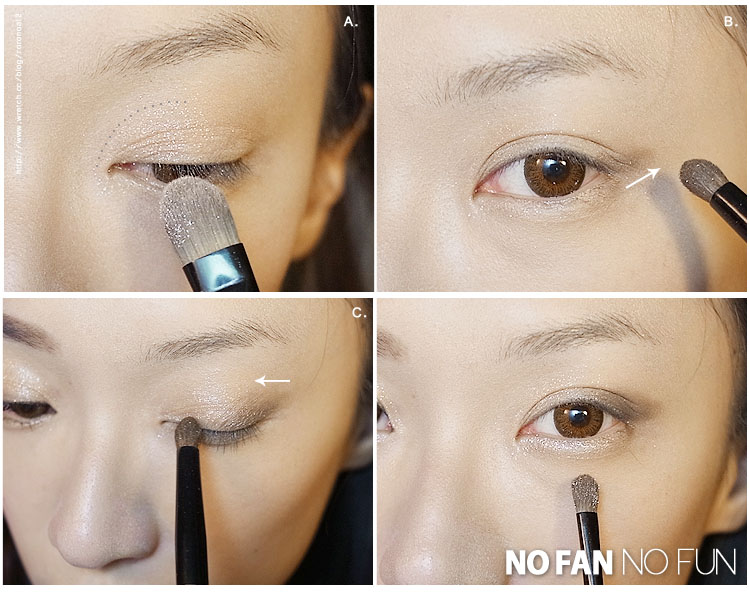B.立用較深的色號2來改變眼尾的眼型,如果你有下垂眼的困擾,可以稍微把眼尾劃高