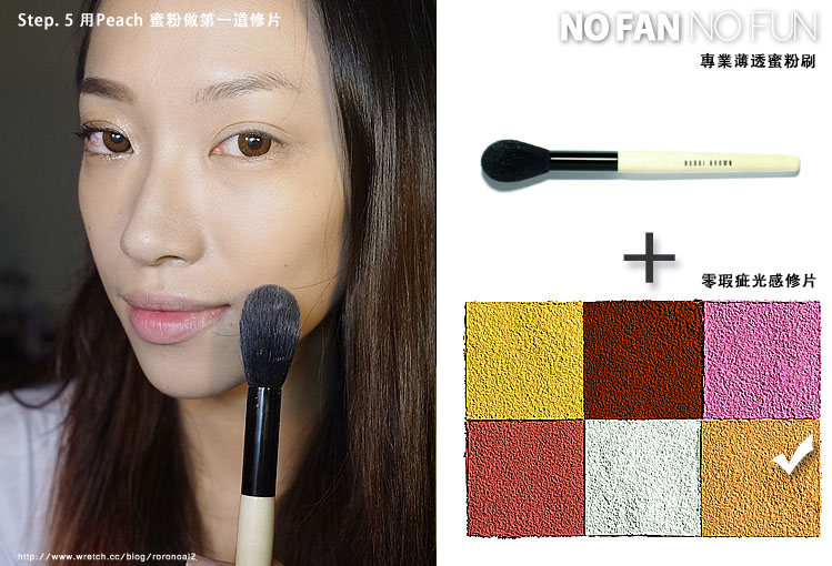利用PEACH色號+專業蜜粉刷來刷全臉