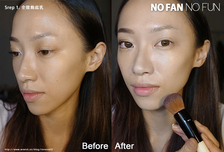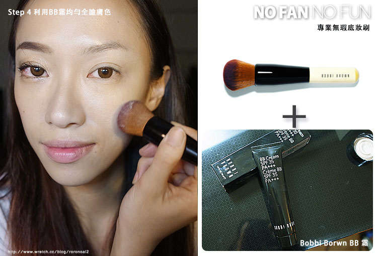 使用BB全效持久飾底乳打底+專業無暇底妝刷效果